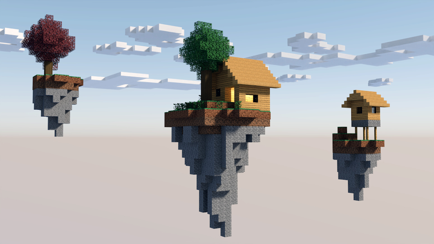 - Überlebe auf einem Block in Minecraft mit wunderschönen Inseln im Himmel;