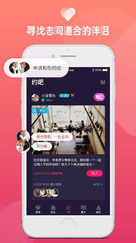 Willst du am Wochenende auf Partys gehen, ausgehen und Filme schauen, hast aber keine Freunde mit der gleichen Idee in der Nähe? Initiieren Sie online Aktivitäten, um gleichgesinnte Partner zu finden, versehentlich Seelenverwandte zu treffen und zu verhindern, dass die wahre Liebe leise entgleitet.