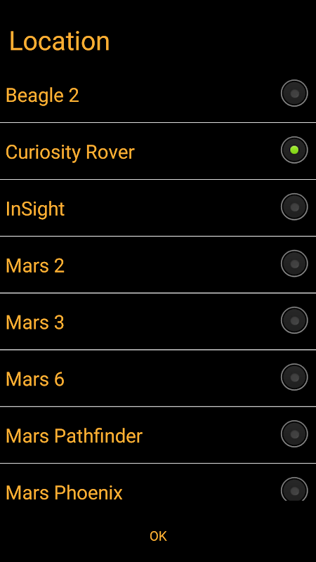 Diese Anwendung gibt die Zeit für bestimmte Orte auf dem Planeten Mars an, einschließlich aktueller und zukünftiger Lander und Rover.