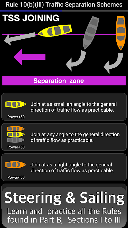 Beginnen Sie mit dem Lernabschnitt, um die Regeln Schritt für Schritt zu verstehen, und wechseln Sie dann zum Übungsabschnitt, um Ihr Wissen zu vertiefen und Ihre Leistung zu verbessern. Master-Nav deckt COLREGS Teil A bis Teil D (Regeln 1-37) und die Notsignale in Anhang IV ausführlich ab. Mit über 1000 Fragen in verschiedenen Formaten, jede unterstützt durch klare grafische Antworten, die Fehler hervorheben, vertieft Master-Nav Ihr Wissen durch wiederholtes Üben und macht das Einhalten von Regeln mühelos.
