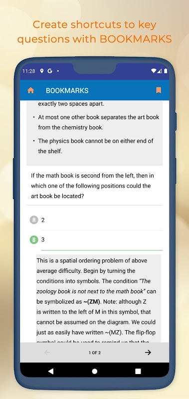 Bauen Sie Ihr Selbstvertrauen auf und bereiten Sie sich mit mehreren Übungstests auf die echte LSAT-Prüfung vor. Jede Frage hat eine sehr detaillierte Erklärung, die nicht nur erklärt, warum die richtige Antwort richtig ist, sondern auch, warum die falschen Antworten falsch sind.