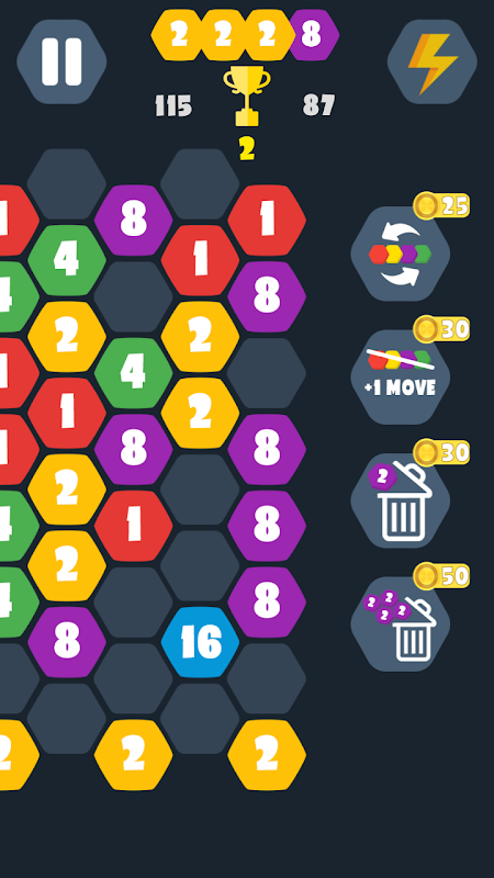 Match4+ ist ein sehr unterhaltsames und spannendes Hexagon-Zellen-Verbindungsspiel, das Sie KOSTENLOS zum Weiterspielen animiert.