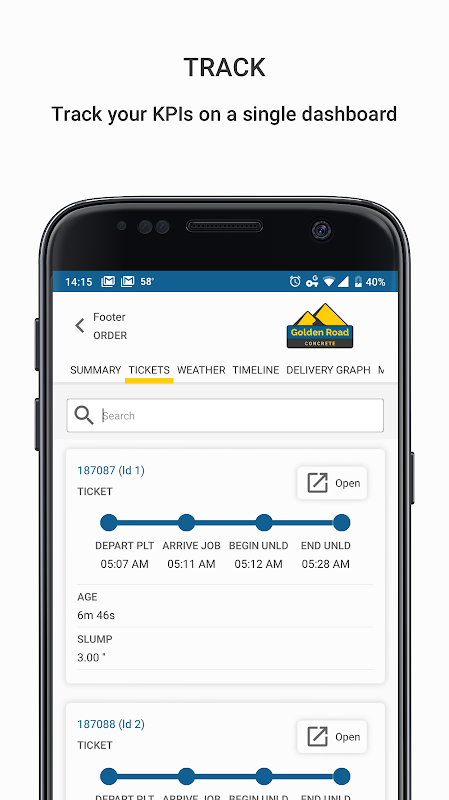 Wenn Sie über ein Smartphone oder Tablet verfügen, haben Sie die erforderlichen Updates, um fundierte Entscheidungen treffen zu können. Die Außendienstmitarbeiter können Lastwagen verfolgen, Nachrichten mit Materialanbietern austauschen, Warnungen erhalten und Probleme vermeiden. Manager können die Projekt- und Crew-Leistung verfolgen, neue Aufträge anfordern und die Finanzen überprüfen - alles von einem mobilen Gerät oder online.