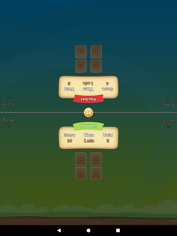 Finde heraus, wer schlauer ist - du oder dein Freund? Spiele zusammen auf demselben Handy oder Tablet! Unterhaltsames und kostenloses Mathe-Spiel - der Bildschirm ist zweigeteilt. Beantworte die Fragen schneller als dein Gegner innerhalb einer begrenzten Zeit.