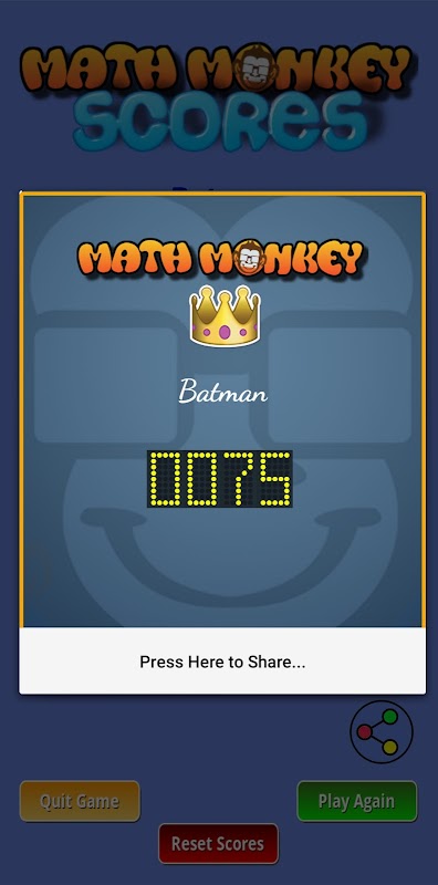 Kindern hilft diese App sehr, ihre mathematischen Fähigkeiten zu verbessern und hilft auf jeden Fall ihrem IQ. Wir alle haben Situationen erlebt, in denen Menschen einen Taschenrechner brauchten, um einfache alltägliche mathematische Operationen zu berechnen. Nun ... wenn Sie Ihre Fähigkeiten ... und / oder die Fähigkeiten Ihres Kindes entwickeln ... mit Math Monkey können Sie am Ende ein Genie sein.