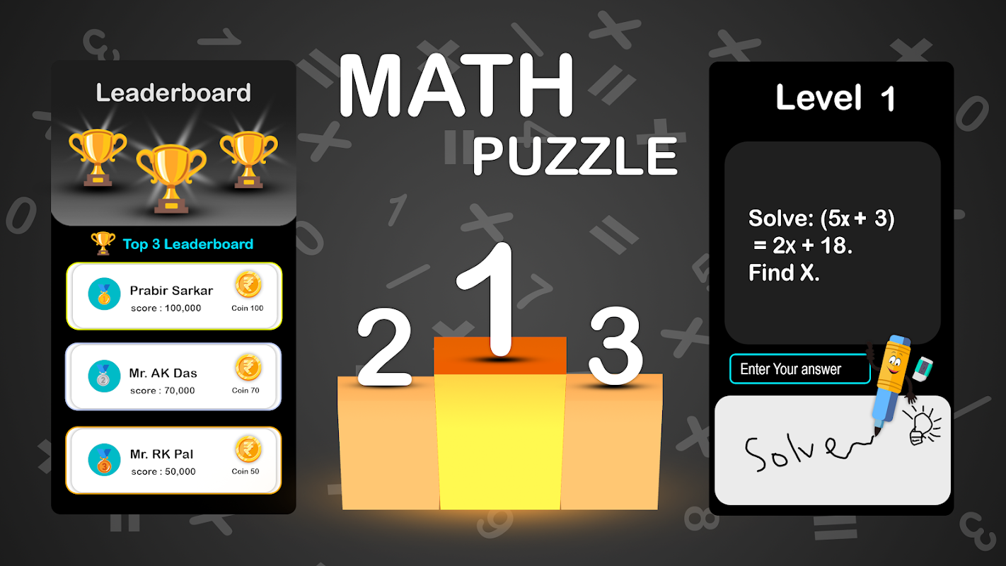 Dieses Spiel ist perfekt für alle, die Mathe-Rätsel, Logikrätsel und IQ-Tests lieben! Egal, ob Sie Schüler, Mathe-Fan oder einfach nur Ihre Problemlösungsfähigkeiten verbessern möchten, diese App ist genau das Richtige für Sie.