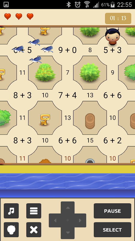 Du musst zum Fluss gelangen, indem du Matheaufgaben löst.