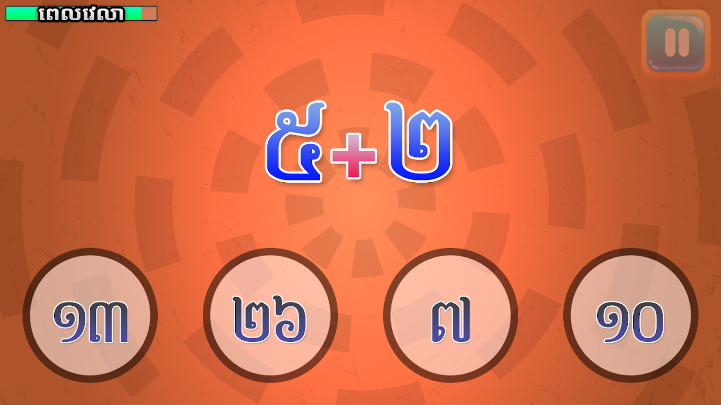 This game is for all age who wish to challenge and strengthen basic math operation of Khmer Numbers include addition, subtraction, multiplication and division.