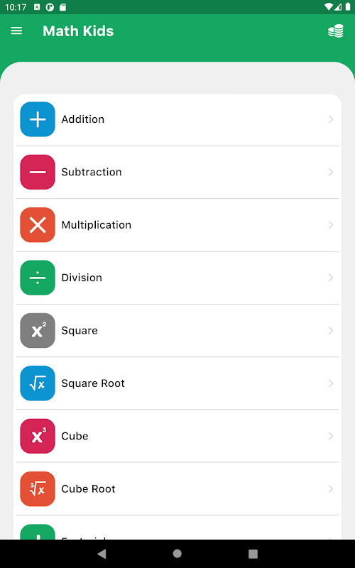 Feature Includes: Addition, Subtraction, Multiplication, Division, Square, Square Root, Cube, Cute Root, Factorial, Mixed, Addition/Subtraction, Complicated Multiplication, Complication Division.