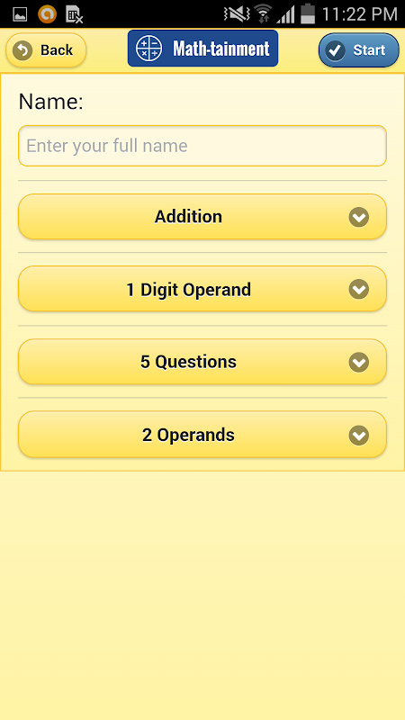 Math-tainment ist ein Mathe-Test mit Addieren, Subtrahieren, Multiplizieren und Dividieren Fragen.