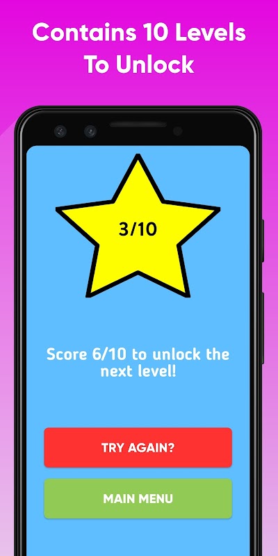 This game contains 10 quizzes, each containing 10 questions. To unlock the next level you must score 6/10. Each new level gets progressively more difficult.