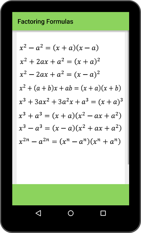 Mit APKPure können Sie Maths Algebra Formula APK einfach und sicher mit Signaturüberprüfung herunterladen.
