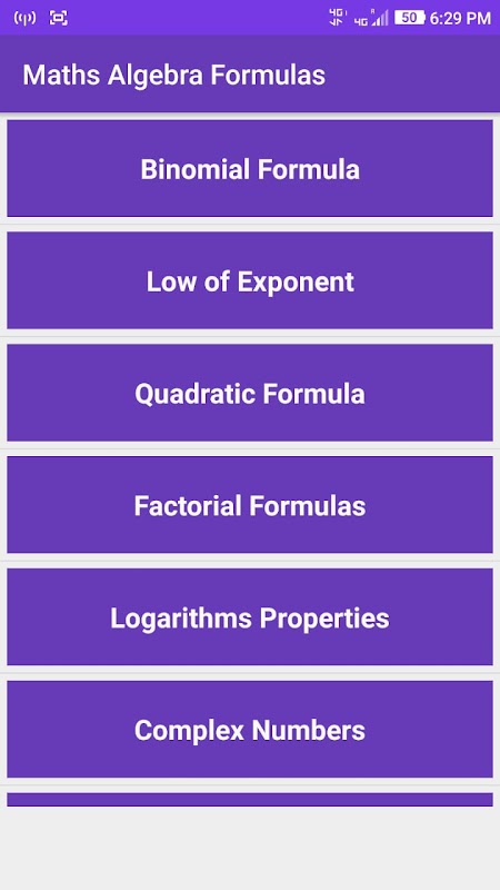 ✦ This is an app designed for Students for quick access to Algebra Formulas.