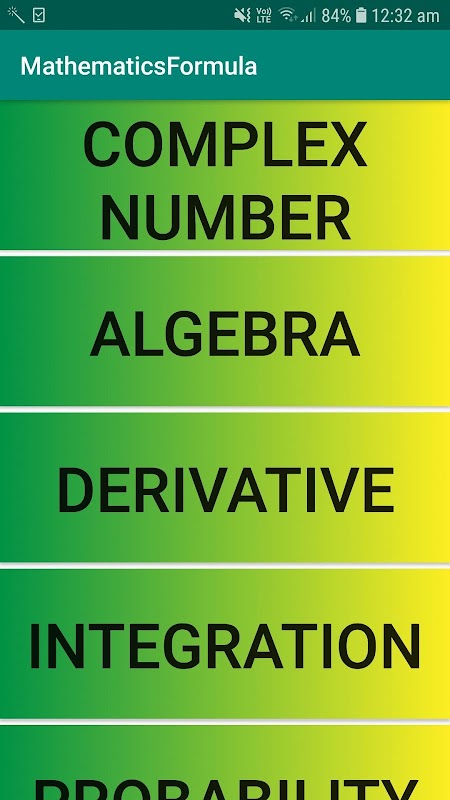 This app is having Maths Formulas consists of Algebra, Derivative, Integration, complex numbers, etc.