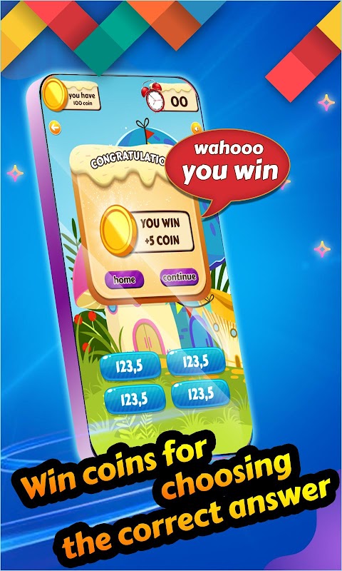 Sobald Sie auf den gewünschten Modus klicken, erscheint ein neuer Bildschirm mit mathematischen Fragen und vier geeigneten Antwortoptionen. Unter den vier Antwortmöglichkeiten gibt es eine richtige Antwort. Wenn der Benutzer auf die richtige Antwort klickt, gewinnt er 5 Münzen. Wenn er jedoch auf die falsche Option klickt, werden 5 Münzen von seiner Münzsammlung abgezogen. Die Zeit für die Beantwortung der Fragen ist begrenzt. Wenn Sie die Frage nicht beantworten können, werden 5 Münzen von Ihrer Münzsammlung abgezogen.