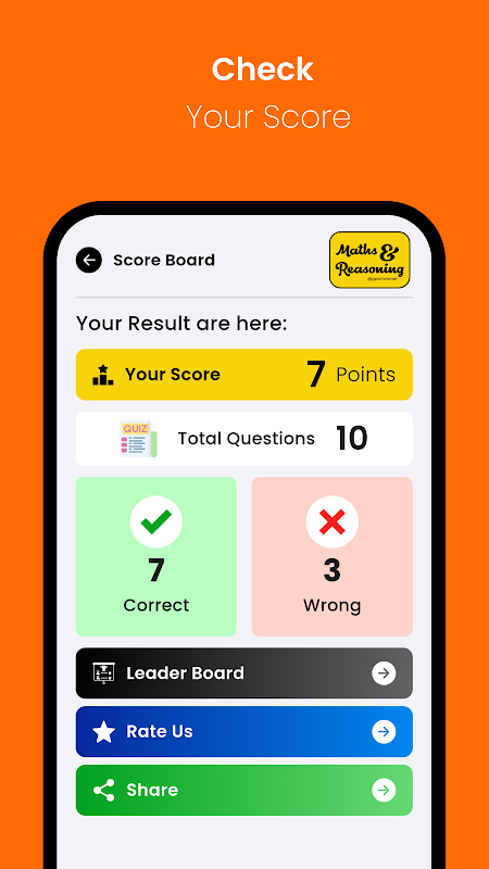 Tauchen Sie mit unserer interaktiven App in das ultimative Mathe-Quiz-Erlebnis ein! Beantworten Sie verschiedene mathematische Fragen. Verfolgen Sie Ihren Fortschritt, während Sie durch die Tests navigieren, und überprüfen Sie sofort nach Abschluss Ihr Ergebnis. Teilen Sie Ihre Erfolge mühelos mit Freunden und Familie und demonstrieren Sie so Ihre Beherrschung mathematischer Konzepte.