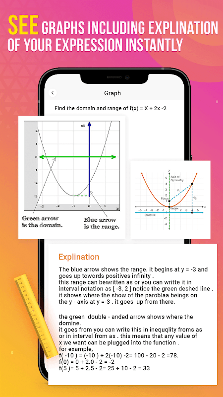 Im Bereich der Funktionen kann unsere App verschiedene Arten von Funktionen wie lineare, quadratische und Exponentialfunktionen grafisch darstellen und ihre Eigenschaften wie Definitionsbereich und Asymptoten identifizieren.