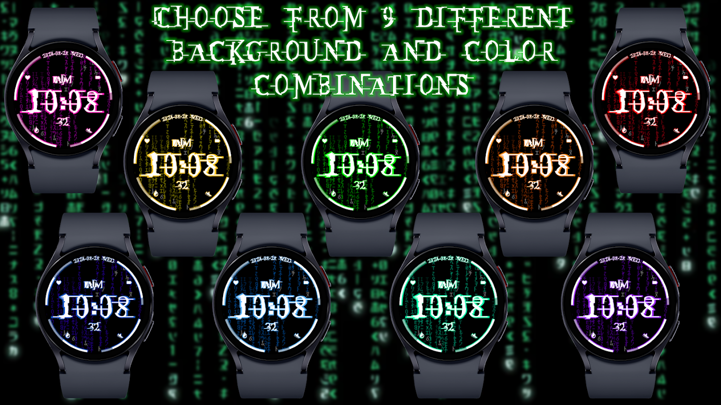 Animiertes Zifferblatt im Matrix-Stil mit 4 anpassbaren Komplikationsplätzen