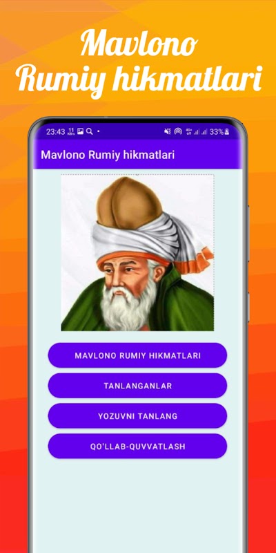 Mit APKPure können Sie Mavlono Rumiy hikmatlari APK einfach und sicher mit Signaturüberprüfung herunterladen.