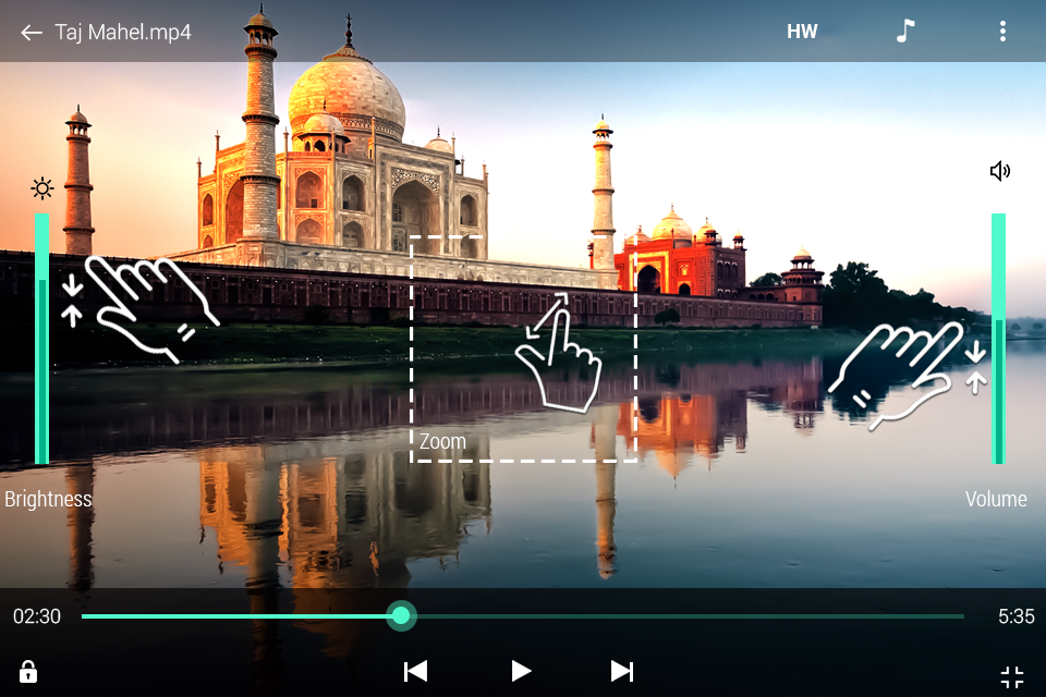 - Swipe control for volume,brightness & seeking