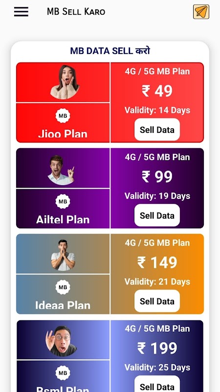 Beginnen Sie mit dem Verkauf von MB mit der MB-Daten-Sell-Kro-App