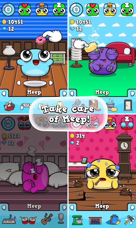 Meep - Virtual Pet Game is packed with tons of fun features and mini-games that's never been seen in a virtual pet game before! Meep is also a sibling of Moy!