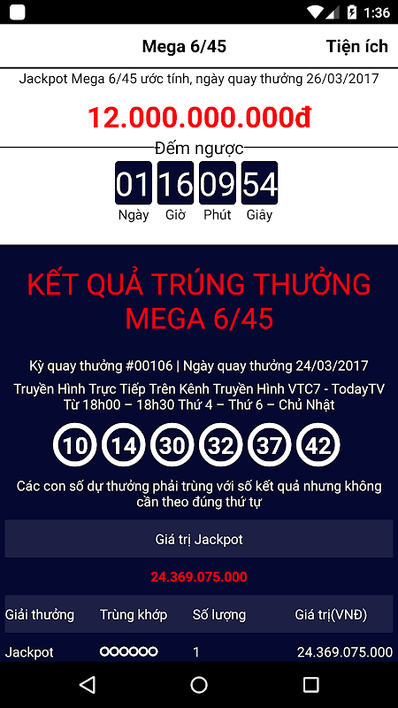 Thông báo kết quả hằng ngày. Thông báo khi sắp tới giờ quay thưởng xổ số điện toán tự chọn khi quay thưởng, hệ thống báo kết quả cho bạn.