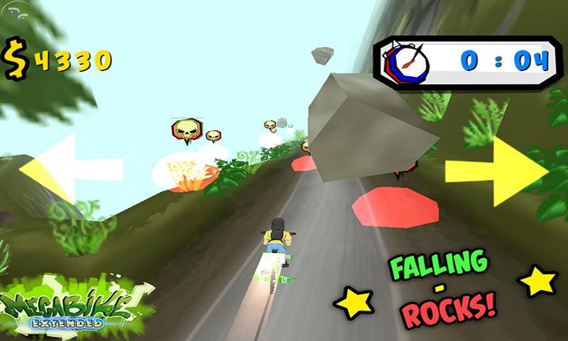 Compete in den verschiedenen extremen Downhill-Rennstrecken Vermeidung der Hindernisse, die in Ihrem Pfad erhöhen wird.