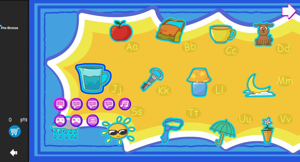 Each letter contains a picture, a song, an animated letter and words that represent the featured letter. Use the MELS Pre-Bronze learning system to acquaint children with objects that start with the target letter and sound, and to introduce them to concepts of print.