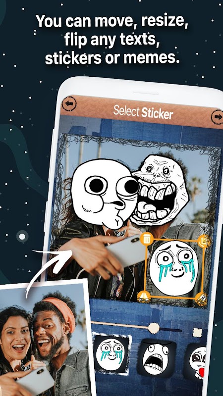 Wähle Meme-Aufkleber für das Foto und füge sie deinem Foto hinzu.