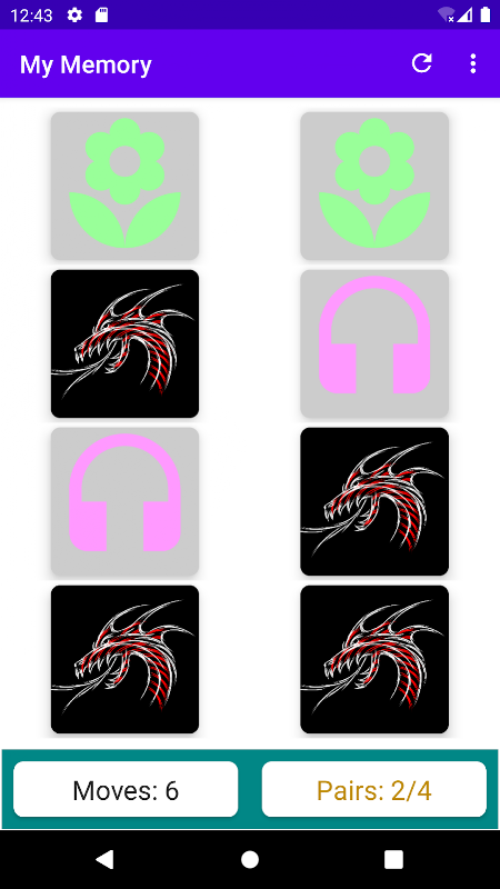 Sie können das Spiel mit Standardsymbolen spielen oder Ihr eigenes Spiel erstellen, indem Sie Ihre eigenen Fotos hinzufügen. Teilen Sie Ihr erstelltes Spiel mit anderen, indem Sie ihnen den eindeutigen Spielnamen senden. Hintergrund: Diese App wurde mit Hilfe von Rahul Pandeys kostenloser Schritt-für-Schritt-Anleitung zur Erstellung einer Android-App auf YouTube erstellt.
