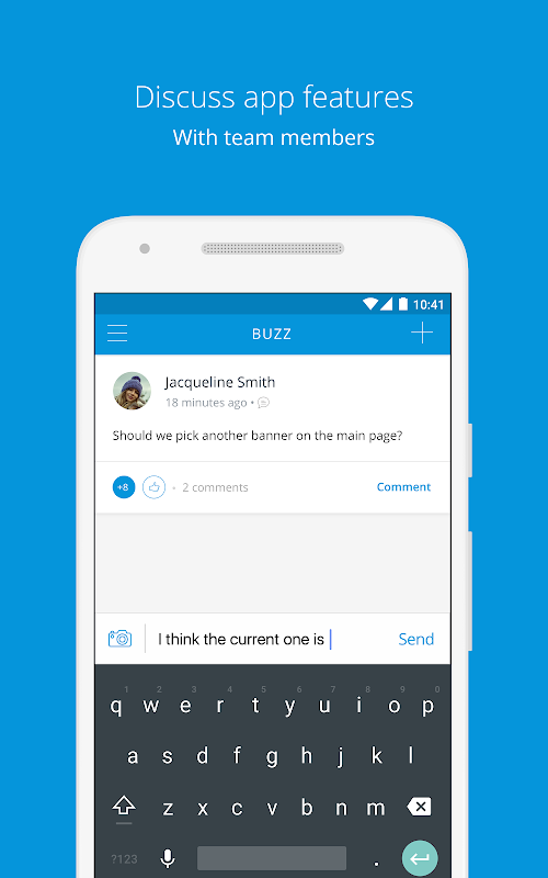 Die Mendix App verbindet alle Beteiligten in dem App Lieferprozess. Teilen Sie Ihre Gedanken über Buzz, Ihr Projekt Social-Media-Feed, App-Funktionen mit anderen Teammitgliedern und Follow-up auf dem Gespräch zu diskutieren, während Sie von Ihrem Schreibtisch weg sind.
