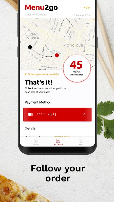 Die Suche nach Restaurants in Ihrer Stadt ist sehr einfach. Filtern Sie sie nach: Art des Essens, Entfernung, Gebühren, Bewertung usw. Nachdem Sie Ihr Lieblingsrestaurant gefunden haben oder auf ein neues Restaurant gestoßen sind, das Sie nicht kennen, können Sie einfach darin navigieren Speisekarte. Wählen Sie Gerichte aus und legen Sie sie in Ihren Warenkorb. Sie können auch spezielle Kochanweisungen für jedes einzelne Gericht geben, das Sie hinzufügen.