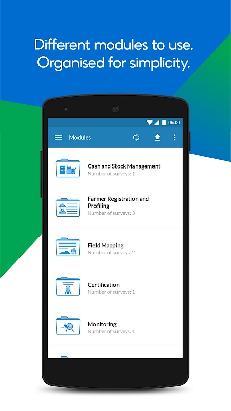 Die Anwendung wird mit Algorithmen, die Rechenfunktionen, Datenquerverweise und Geo-Location (GPS) Funktionen für die genaue Lage und Zuordnung ermöglicht gebaut. Darüber hinaus wird die Anwendung mit Funktionen ausgestattet, um die Rückverfolgbarkeit von Waren zu erhöhen. Es ermöglicht die nahtlose Bereitstellung von Umfragen, mehrere Android-Geräte für den Außendienst oder Enumeratoren. Nachdem Umfragen werden auf Android-Geräten im Einsatz, kann Enumeratoren Daten entweder offline oder online zu sammeln. Gesammelten Daten werden synchronisiert, um in Echtzeit zu trüben.
