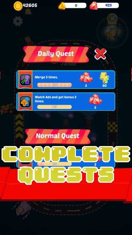 You can earn more money doing the daily quests. Complete them by improving your heroes in this idle tycoon. Moreover, you’ll also be rewarded if you complete the different achievements for every merge that you do.