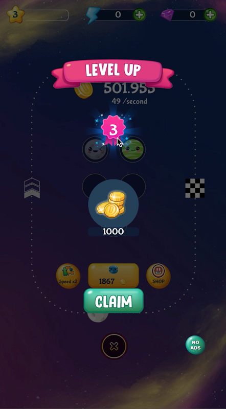 - Kaufen und verschmelzen Sie Planeten und rüsten Sie sie auf das nächste Level auf, um sie zu beschleunigen