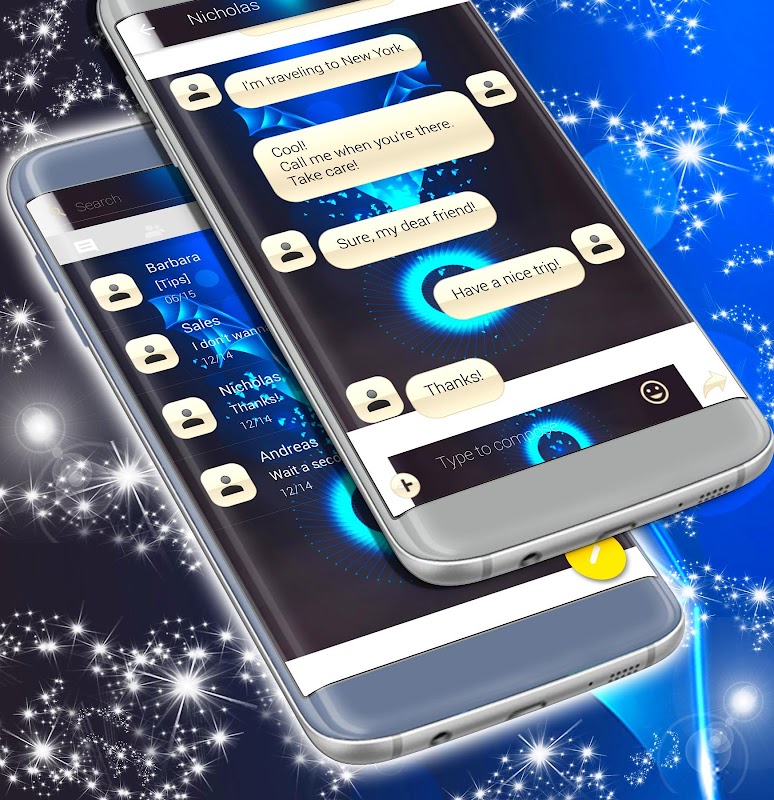 Grab a super SMS theme! This latest new SMS app theme looks amazing on any Android device. Customize your SMS background with our Messenger Themes for Android theme. You will love it! A new SMS theme with superb HD quality graphics, beautiful background, and amazing look!