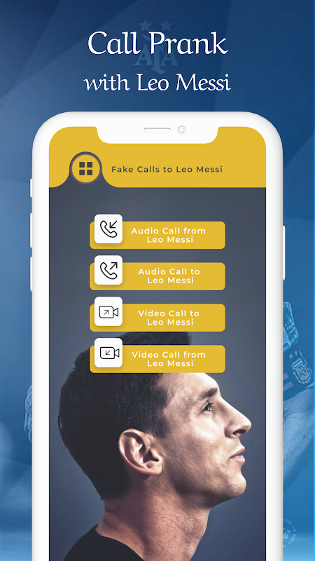 Diese Messi-Fake-Call-App: Lionel Messi Call Facetime dient als Streichanruf- und Messaging-Tool mit Messi und ermöglicht Ihnen die Teilnahme an simulierten Textgesprächen, Videoanrufen und Audioanrufen. Wenn Sie diese gefälschte Messi-Anruf- und Videoanruf-App nutzen, werden Sie Freude erleben und die Möglichkeit haben, Ihren Freunden Streiche zu spielen. Haben Sie schon einmal Ihren Freunden Streiche gespielt? Wenn nicht, haben Sie jetzt die Chance, sie mit dem Lionel Messi-Videoanruf zu überraschen: einer gefälschten Videoanruf-App für Streiche. Wie können Sie Ihre Freunde mit dieser Streich-App „Sprich mit Lionel Messi“ überraschen? Wenn Sie einen simulierten Videoanruf von Lionel Messi erhalten, entsteht die Illusion, dass der echte Messi in diesem Facetime-Messi-Anruf tatsächlich mit Ihnen spricht: Messi-Anruf und Chat.
