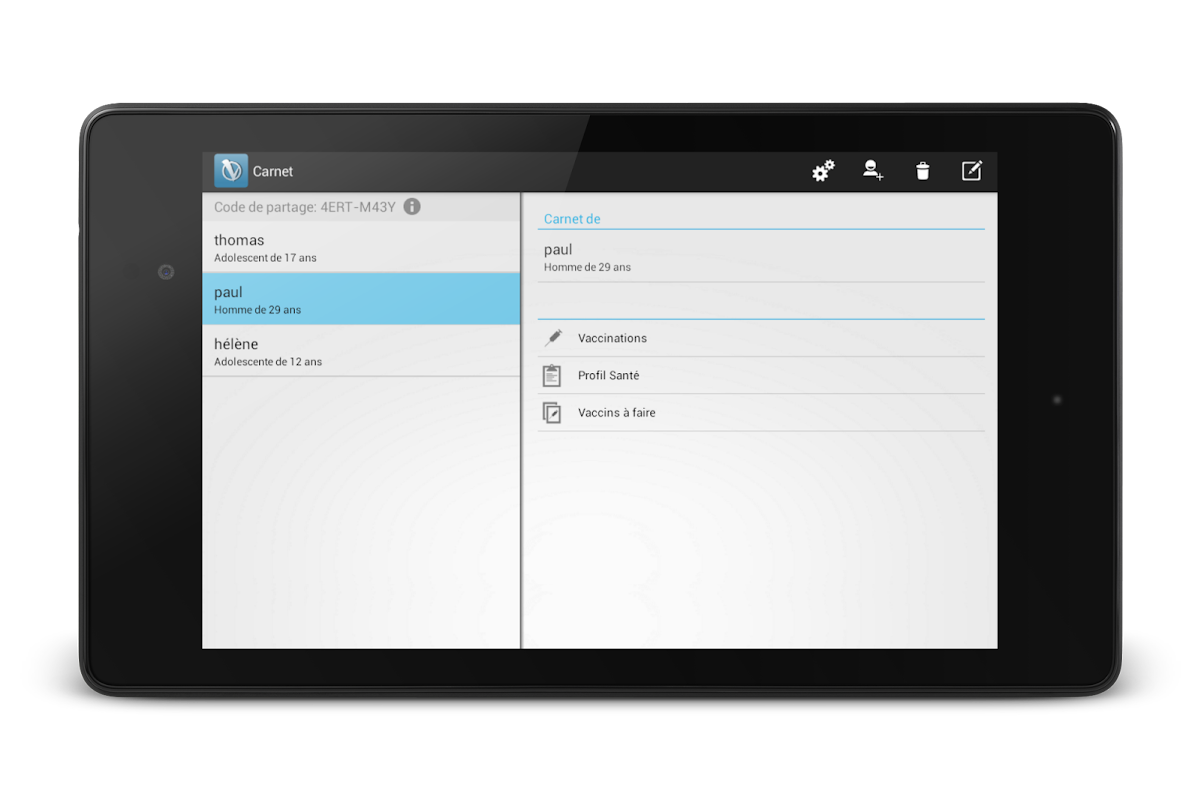 MyVaccines ist das erste intelligente, gemeinsam genutzte und sichere elektronische Impf-Carnet (CVE) für Smartphones. Es macht es einfach, alle Ihre Impfstoffe aufzuzeichnen und sofort zu wissen, vor welchen Krankheiten Sie geschützt werden sollten. Diese Anwendung ist eine Erweiterung der Website www.mesvaccins.net; es erlaubt auf seinem Smartphone seinen Account MesVaccins.net zu verwalten.