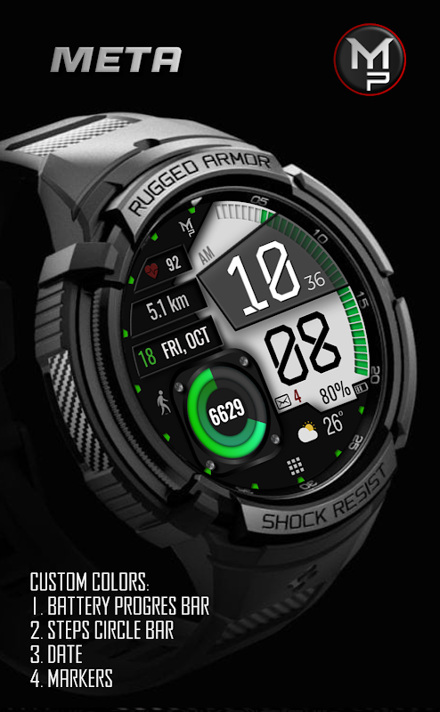 Anpassbares digitales Zifferblatt für Wear OS-Uhren.