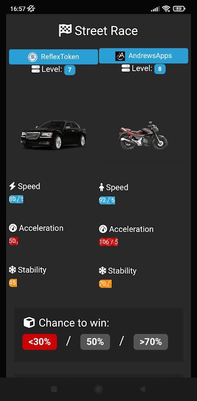 Du kannst gegen andere Spieler kämpfen und Straßenrennen mit deinen Fahrzeugen starten.
