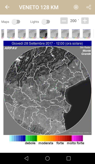 NOTA sul radar di Teolo: è molto instabile. Capita spesso che è disattivato per problemi tecnici. Questo non dipende dall'app.