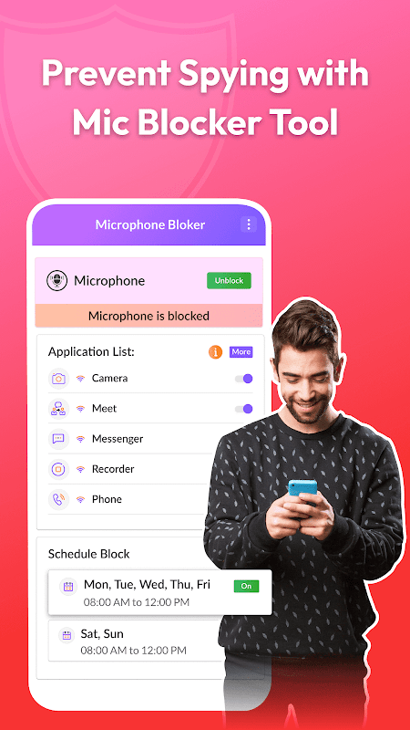 Mic Blocker & Guard – Anti Spy App ist einfach und benutzerfreundlich. Laden Sie die App herunter, um sich vor unethischem Zuhören und unbefugter Mikrofonnutzung zu schützen.