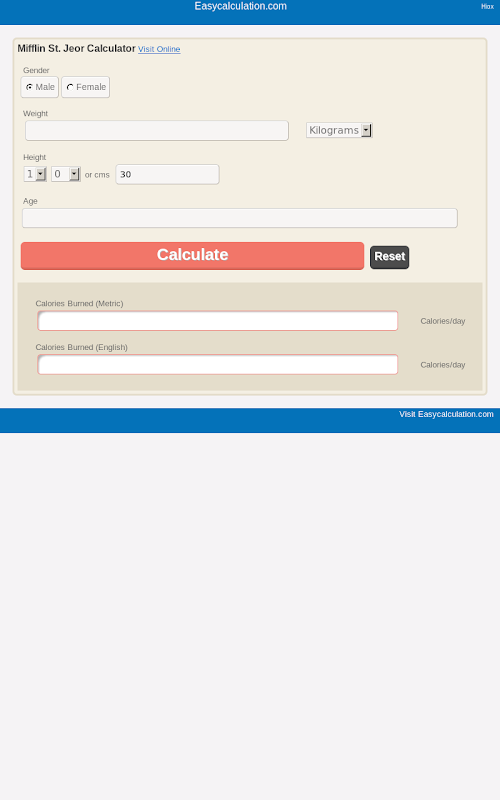 Mifflin St. Jeor Calculator : Find Basal Metabolic Rate.