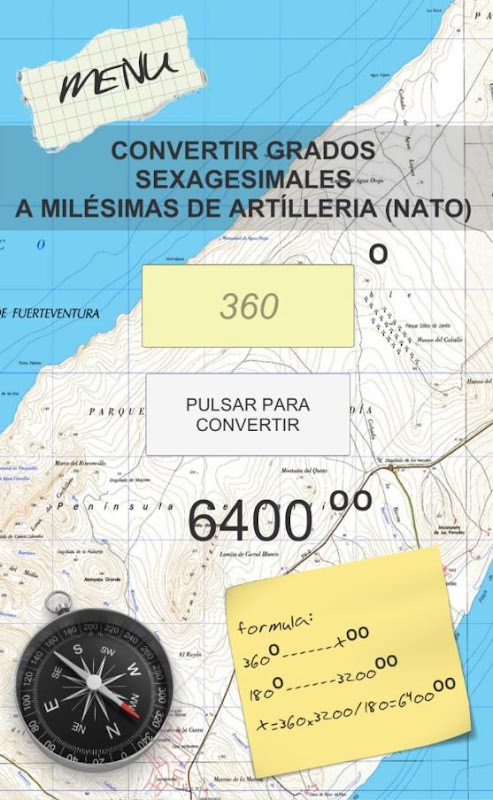 Convertidor de algunas unidades de medidas topográficas de uso mas común en el ámbito militar.