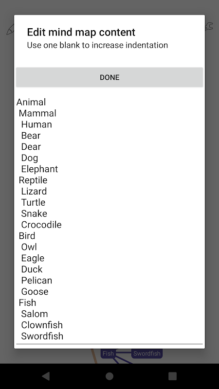 Bearbeiten Sie den Inhalt der Mindmap (verwenden Sie ein Leerzeichen, um den Einzug zu vergrößern)