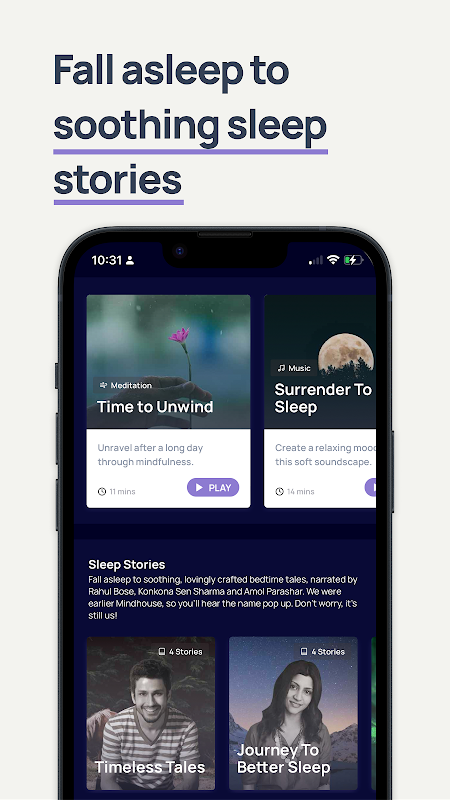 Mindhouse ist die einzige App, die Sie für alle mentalen Wellness-Bedürfnisse benötigen und die auf Ihre Ziele zugeschnittene Meditation und Community-Unterstützung bietet. Unsere Meditationen sollen Ihnen eine breite Palette einzigartiger Techniken vermitteln, die von Achtsamkeit mit Musik über zyklische Meditation, Atemarbeit, Visualisierung, Dankbarkeit und mehr reichen. Die Plattform bietet außerdem eine umfangreiche Bibliothek mit vorab aufgezeichneten Inhalten, die Ihnen beim Einschlafen und Ihren anderen Zielen helfen, darunter von Prominenten erzählte Schlafgeschichten, Schlaflandschaften, beruhigende Geräuschkulissen und Musiktitel, die Ihnen eine Fülle von Optionen bieten.