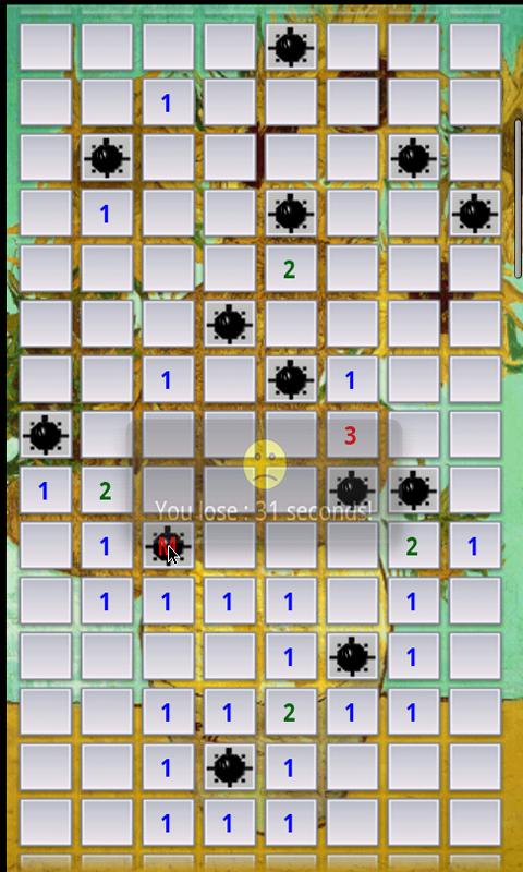 Minesweeper Spiel basierend auf der Anzahl, die auf der Karte erscheint auf den Kopf, wie das Spiel, um die Lage von Minen zu schätzen ist. Durch Drücken der Minen für eine lange Zeit vermutet, die Karte (wenn man touch) Grafikkarte kann mir zu ändern. Wenn Sie alle Minen erfolgreich zu finden, ist das Spiel vorbei.
