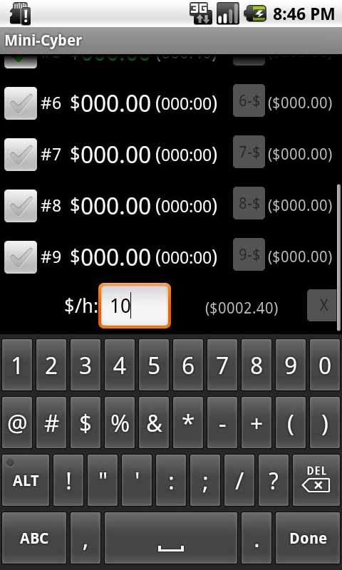This app tracks charges for customers at Cyber Internet Cafés that charge a fixed amount per hour for internet usage (for up to 9 computer/phone/gaming systems). It was created to track charges at our Cyber internet which has 4 laptops, 4 game consoles, and 1 phone. Higher rates are charged for phone and game system usage. This app allows bill tracking for them all on any android device.