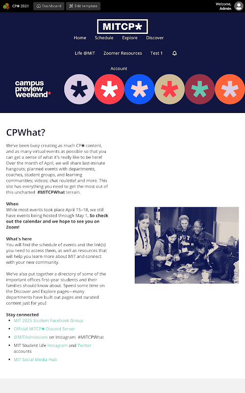 Dies ist die offizielle App für das MIT Campus Preview Weekend 2021 (auch bekannt als CP✱).